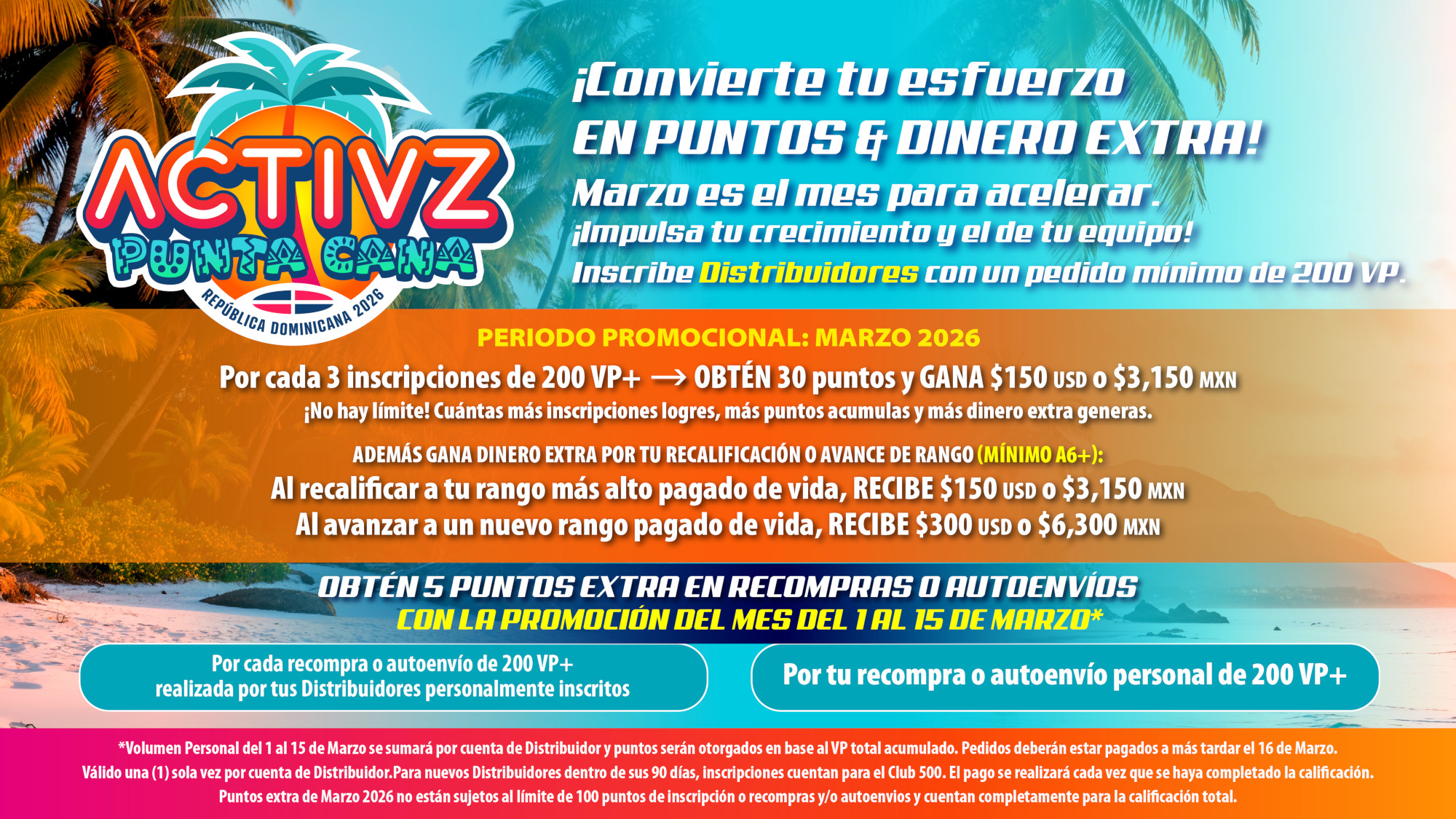 Inscripciones de Nuevos Distribuidores o Clientes Preferidos con un mínimo de 100 VP+.